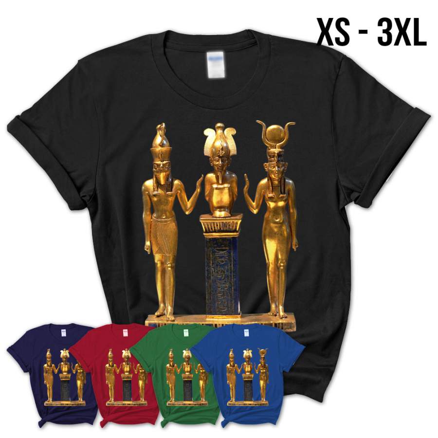 Egyptian Trinity Golden Horus Osiris And Isis Statue T-Shirt – Teezou Store