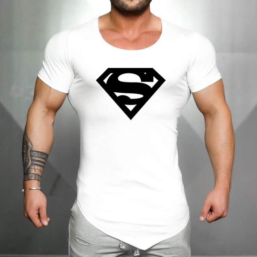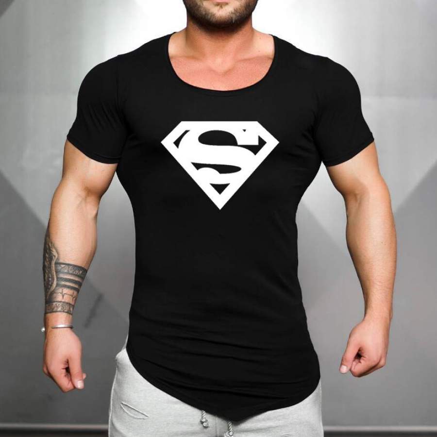 men Clothing Male Slim Fit t shirt fitness T-shirts Casual T-Shirts gold superman print men gyms tops tees