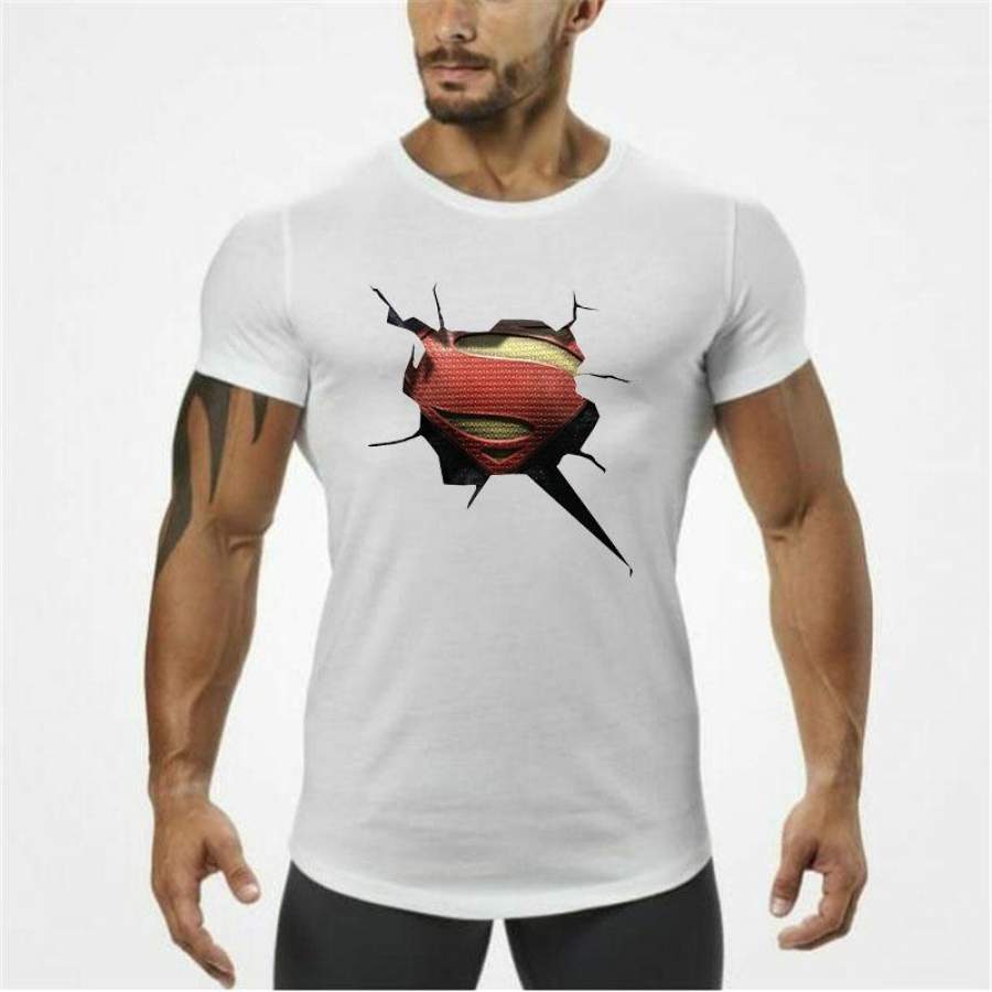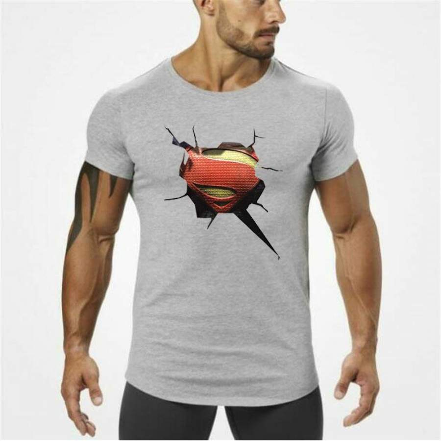 men Gyms Clothing Male Slim Fit t shirt fitness T-shirts Casual O-neck T-Shirts 3 D superman men tops tees