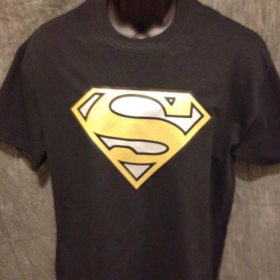 Superman Logo Variant Gold and Silver Alternate-Color Logo Black Tshirt Superman Logo Tshirt